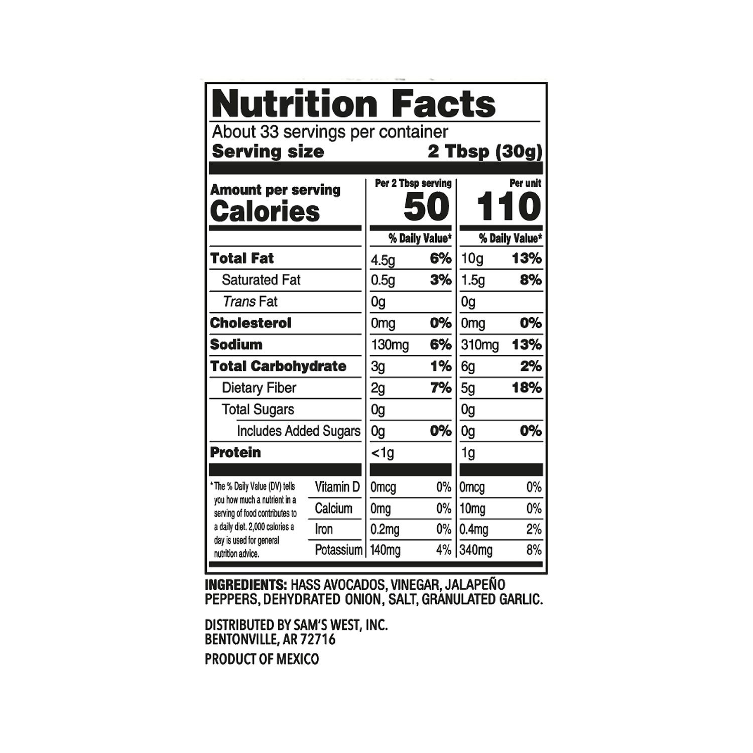 Hass avocados, vinegar, jalapeno peppers, dehydrated onion, salt, granulated garlic