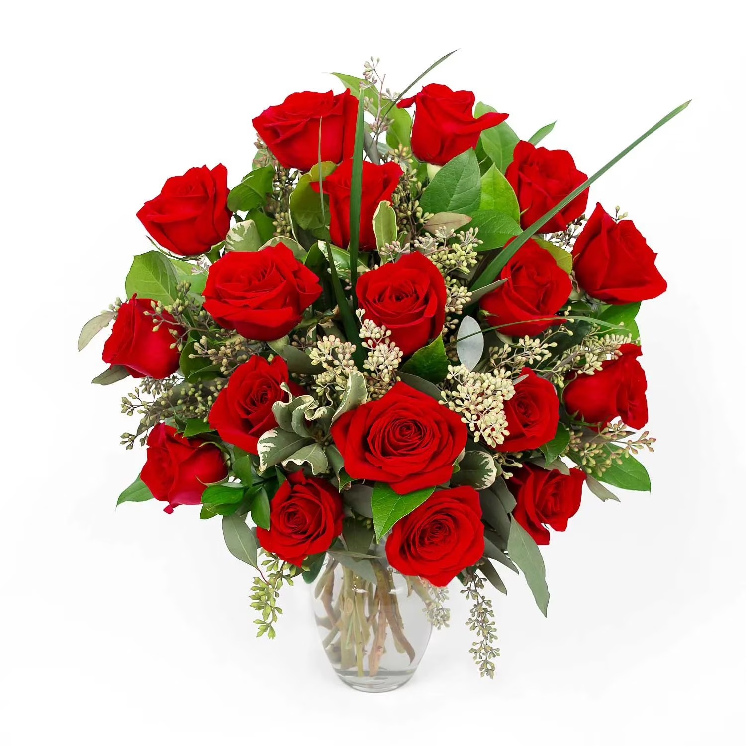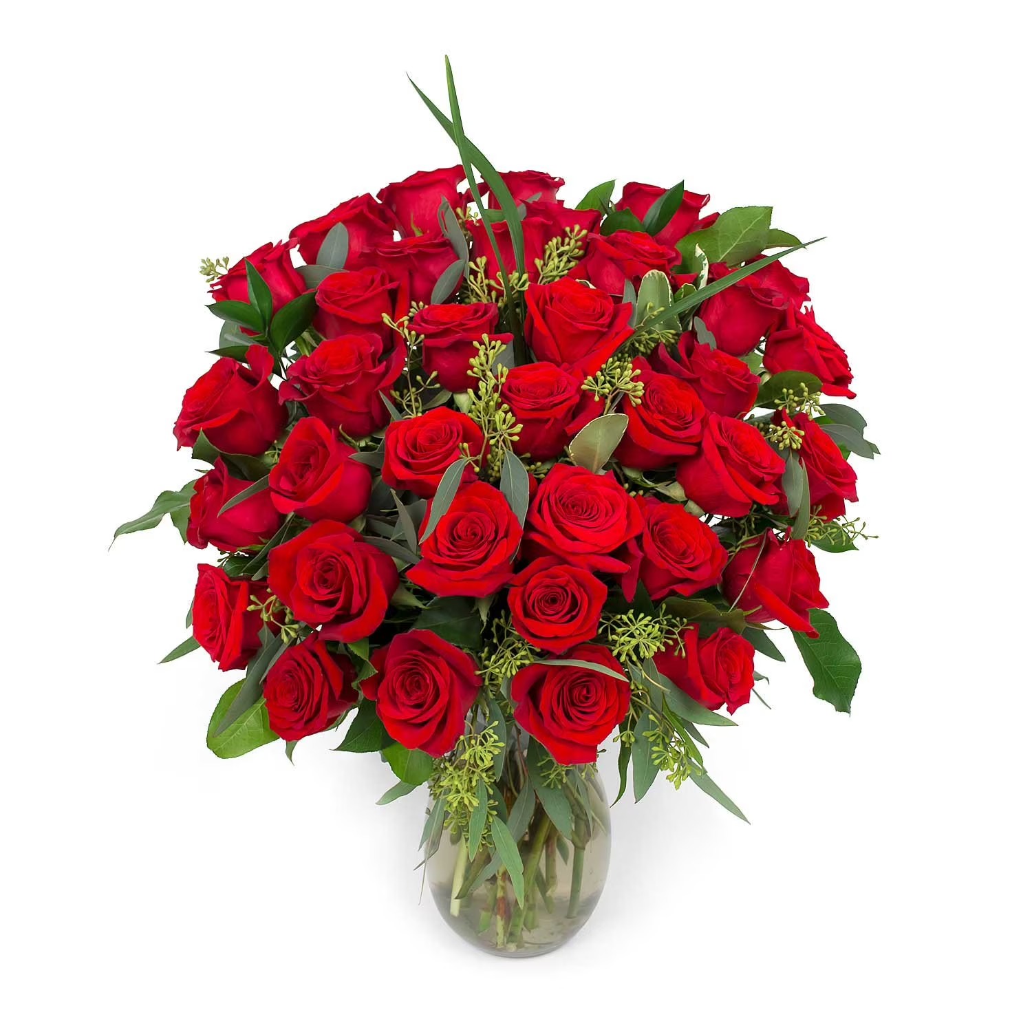 Surprise your loved one on a special occasion with a beautiful bouquet with the Member's Mark Red Roses and Greenery Vase Arrangement. This premium bouquet features classic and timeless Red Ecuadorian Roses that symbolize love and romance, surrounded by fresh greenery for a florist-designed look. The greenery includes aromatic Seeded Eucalyptus, Ruscus and Lily Grass. You can choose from 12, 18, 24, or 36 stem count options to find the perfect gift for your special someone. Each arrangement comes with a vase, so you can display it as soon as it arrives. It's a perfect gift that can make any special occasion even more memorable!