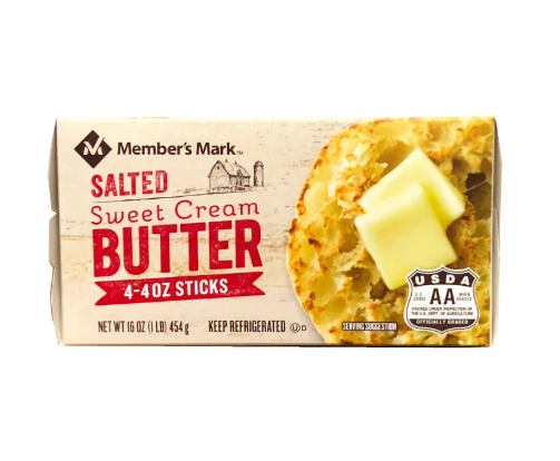 Member's Mark Salted Sweet Cream Butter is lightly churned for a smooth texture, so it's easy to spread. This four-pound pack is also USDA AA officially graded for quality.