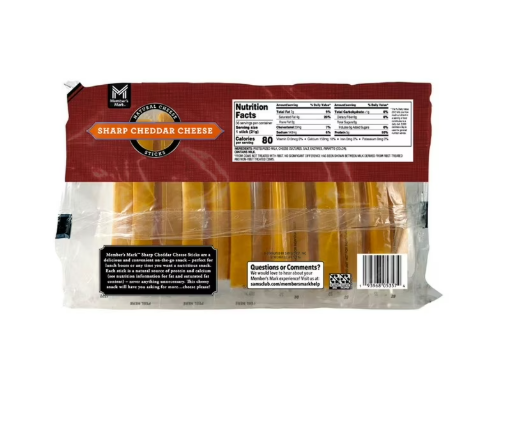 Member's Mark delivers a high-quality snack—Sharp Cheddar Cheese Sticks! These cheese sticks are a delicious and convenient on-the-go snack, perfect for lunch boxes or anytime you want a tasty bite but without all the calories. Each stick has just five ingredients and is a natural source of protein and calcium—never anything artificial. It's a healthy cheesy stick that will leave you asking for more… cheese please!