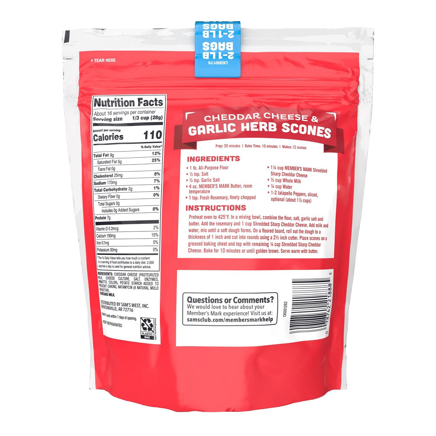Member's Mark Sharp Cheddar Finely Shredded Cheese 2 pk.