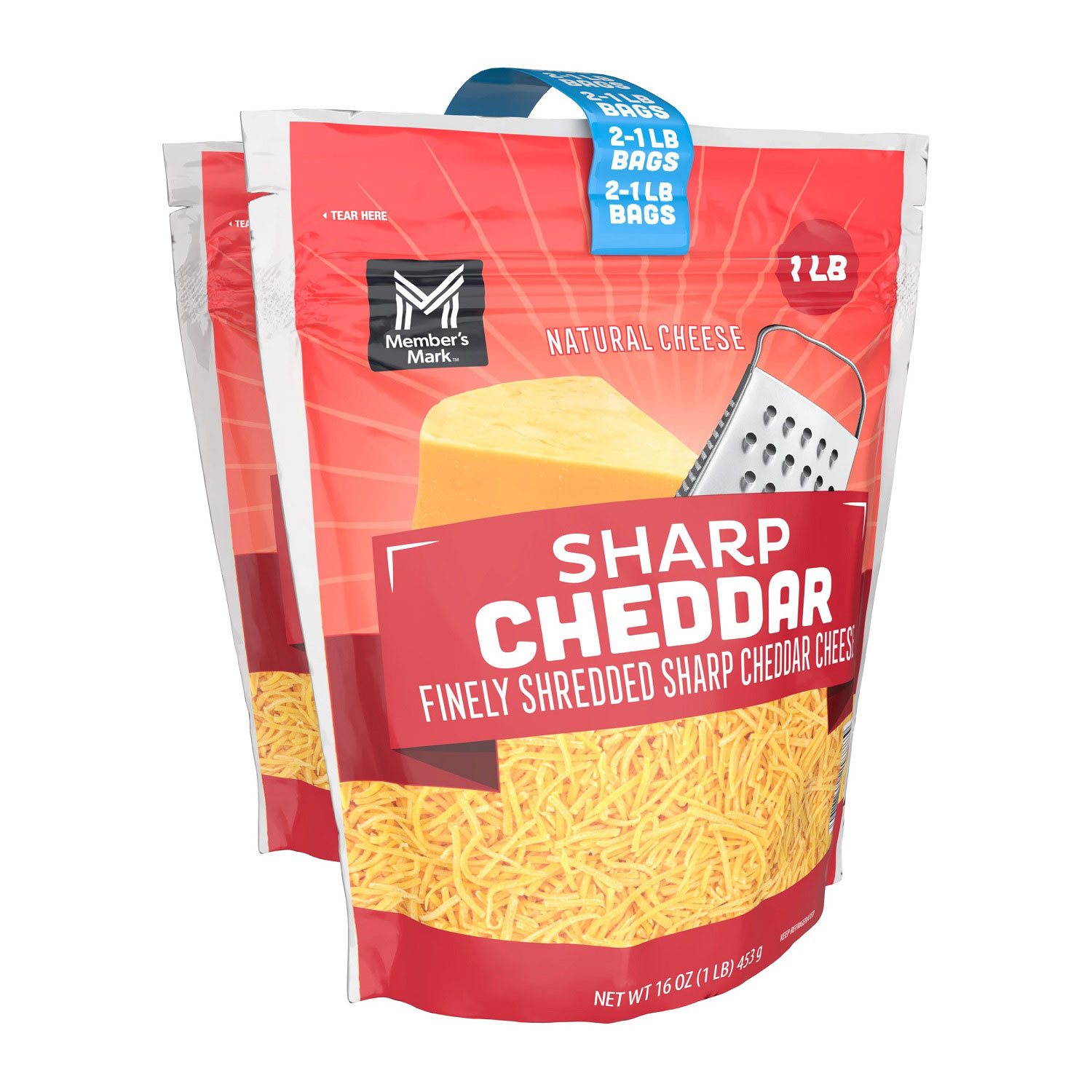 Member's Mark™ Sharp Cheddar natural cheese is finely shredded for your convenience. This delicious natural cheese is great for restaurants or personal use. Packaged into two individual resealable bags that contain four cups of product each, it's great to keep in the fridge and will stay fresh.
