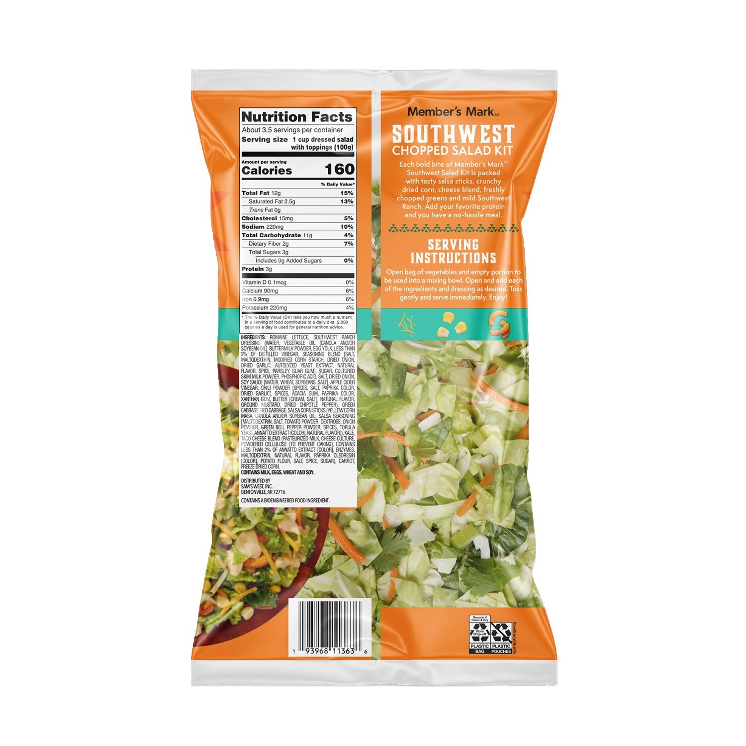 Not only is this salad kit flavorful, but it's also nutritious. Each serving contains 3 grams of protein and 2 grams of fiber, making it a healthy choice. So, whether you're spicing up your regular weeknight meals or need a dish to share, the Member’s Mark Southwest Chopped Salad Kit delivers the flavors you crave in a convenient, all-in-one package. Just open, toss, and enjoy a little southwestern flair whenever the mood strikes!