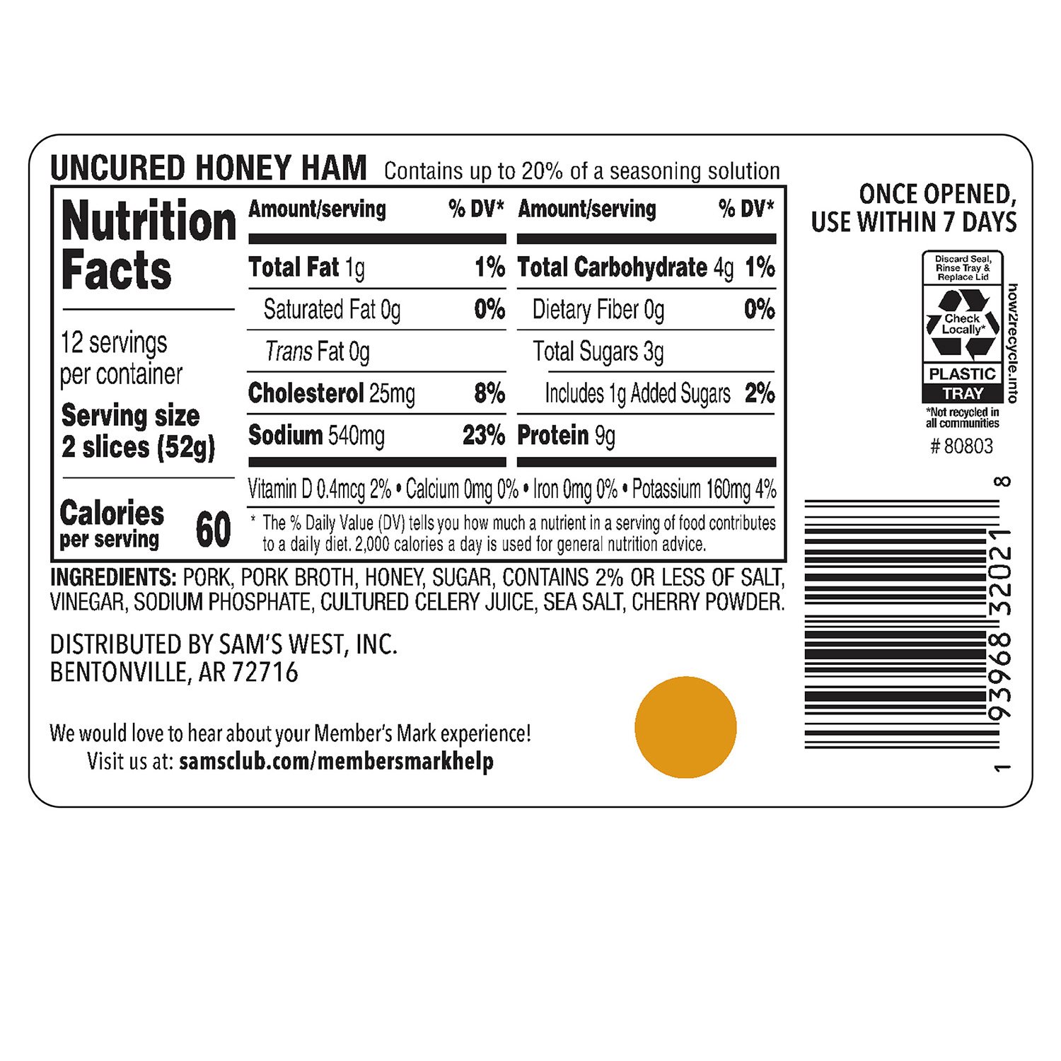 Member's Mark Uncured Honey Ham is perfect when you’re too busy to cook a meal from scratch. Savor the flavors of a home baked ham without the mess or fuss.