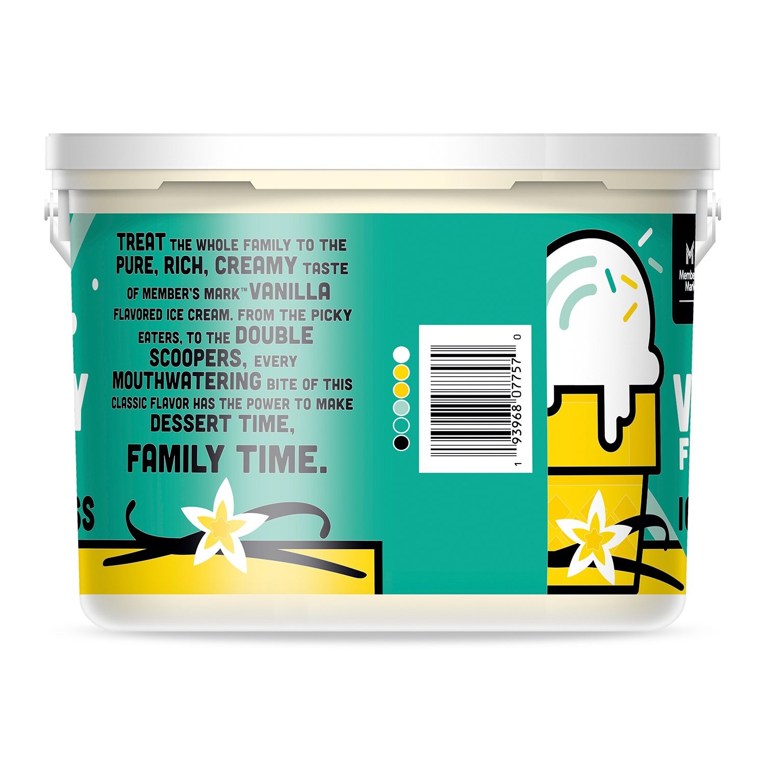 Member’s Mark™ Vanilla Flavored Ice Cream Pail brings velvety smooth deliciousness with every scoop. Made with real milk, this is a treat the whole family will love. From the picky eater, the toppings creator or the double scooper, every mouthwatering bite of this classic flavor has the power to make dessert time family time. Member’s Mark Vanilla Flavored Ice Cream is perfect for milkshakes, sundaes, the a la mode for your favorite slice of pie, or a single scoop next to a slice of cake. Each celebration-sized pail is 5 quarts, or about 30 2/3 cup servings, so there’s plenty of scoops to go around.