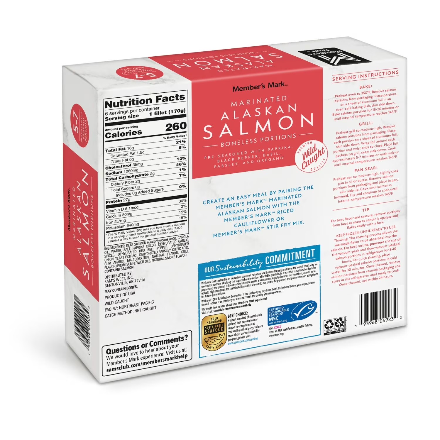 Member's Mark Wild Caught Boneless Marinated Alaskan Salmon, Frozen, 5-7 ct., 2.25 lbs.