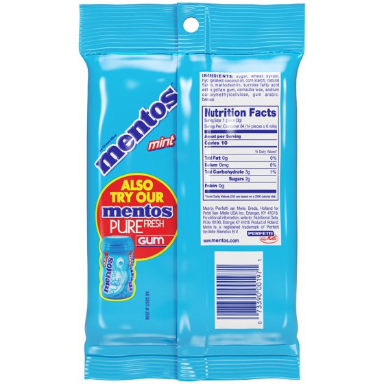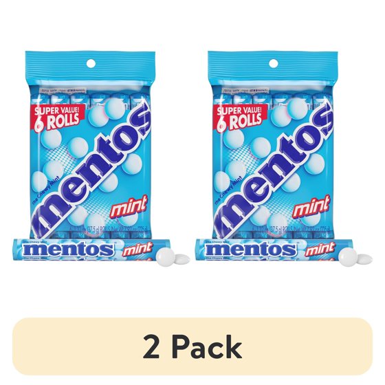 Mentos Chewy Breath Mints Candy Roll, Peppermint, Peanut Free, Regular Size, 1.32 oz, 6 Count