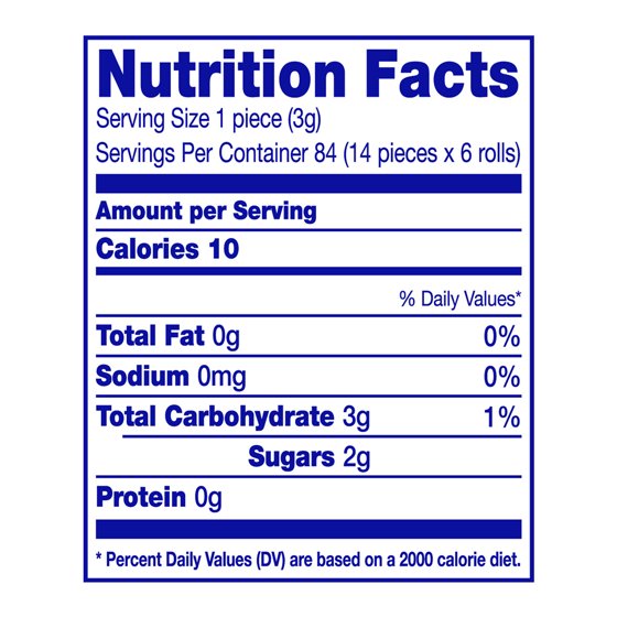 Sugar, Wheat Syrup, Hydrogenated Coconut Oil, Corn Starch, Natural Flavors, Maltodextrin, Sucrose Fatty Acid Esters, Gellan Gum, Carnauba Wax, Sodium Carboxymethylcellulose, Gum Arabic, Beeswax.