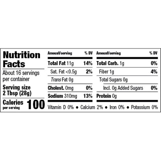 * The % Daily Value (DV) tells you how much a nutrient in a serving of food contributes to a daily diet. Calories per gram:Fat 9 • Carbohydrate 4 • Protein 4