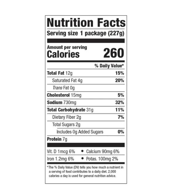 Includes 1, 8 oz meal packaged in convenient "eat out of box" packaging for quick, easy preparation.