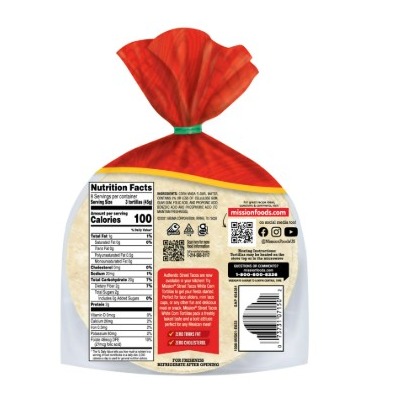 - One 24-count package of Mission White Corn Street Taco Tortillas