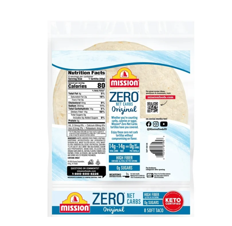 Mission Zero Net Flour Tortillas - 0g Net Carbs - Keto Certified - 8.0" Soft Taco - 8 Count, 11.29 oz. 4.7 stars out of 536 reviews (4.7)| 536 ratings