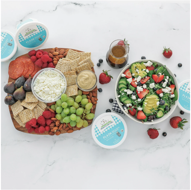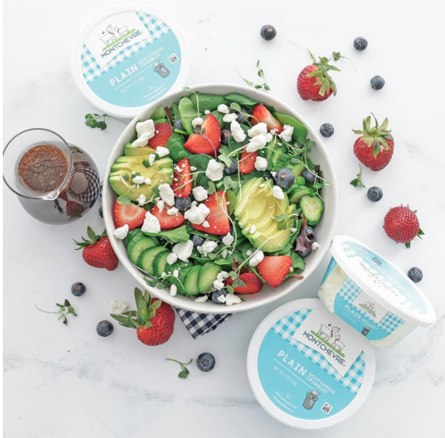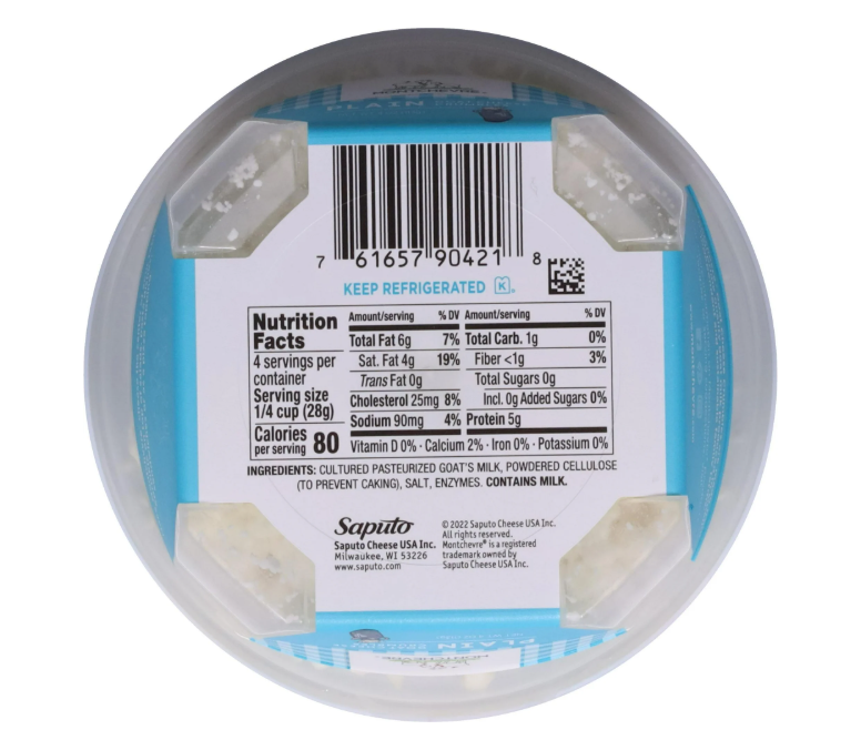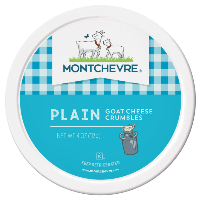 Package includes a 4 oz plastic tub of Montchevre® Plain Goat Cheese Crumbles