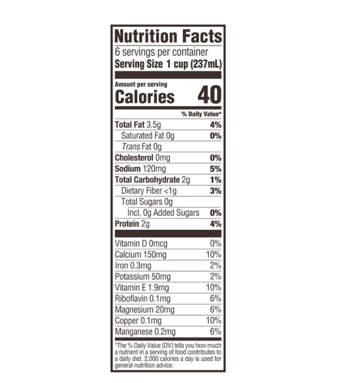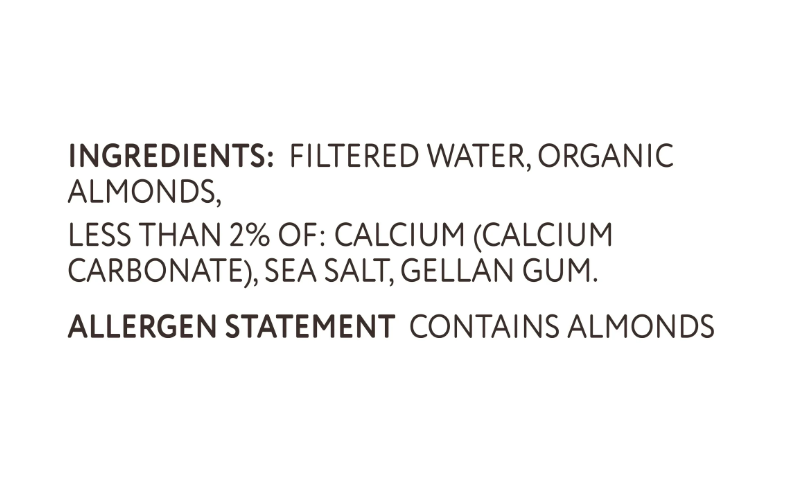 Filtered Water, Organic Almonds, Less than 2% of: Calcium (Calcium Carbonate), Sea Salt, Gellan Gum.