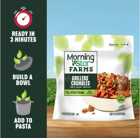 - Includes 1, 12oz resealable bag of MorningStar Farms Grillers Crumbles; Packaged for freshness and great taste