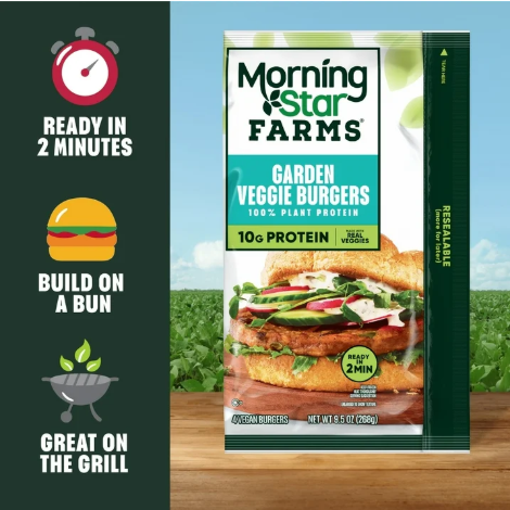 - Vegan plant based meat, MorningStar Farms veggie burgers are a delicious, meat alternative to any balanced diet; Frozen