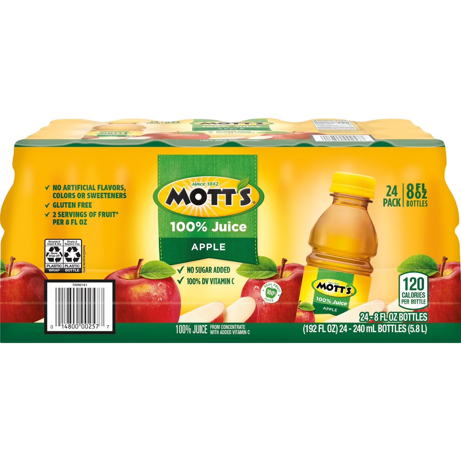 Quench your thirst with the satisfying taste of Mott’s Original Apple Juice. This beverage is packed with the flavor of ripe apples, offering a refreshing and delightful experience. Being 100% fruit juice, it delivers two servings of fruit in each 8 fl. oz cup, as per the current USDA Dietary Guidelines. It's not just a tasty drink, but also a nutritious one.