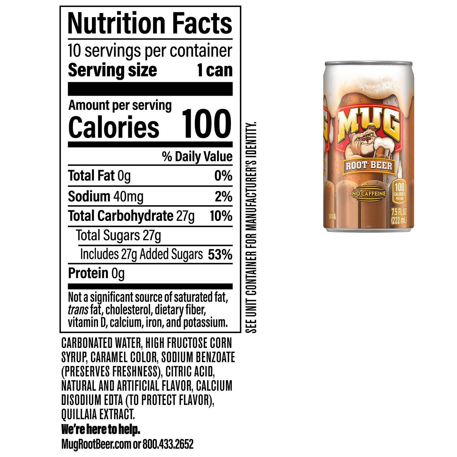 With a net weight of 225 fluid ounces, this pack of MUG Root Beer ensures you have plenty to share with friends and family. The product boasts a shelf life of 128 days, allowing you to stock up and enjoy your favorite beverage whenever you want. This pack contains 30 cans, making it perfect for parties, gatherings, or just for your personal enjoyment.