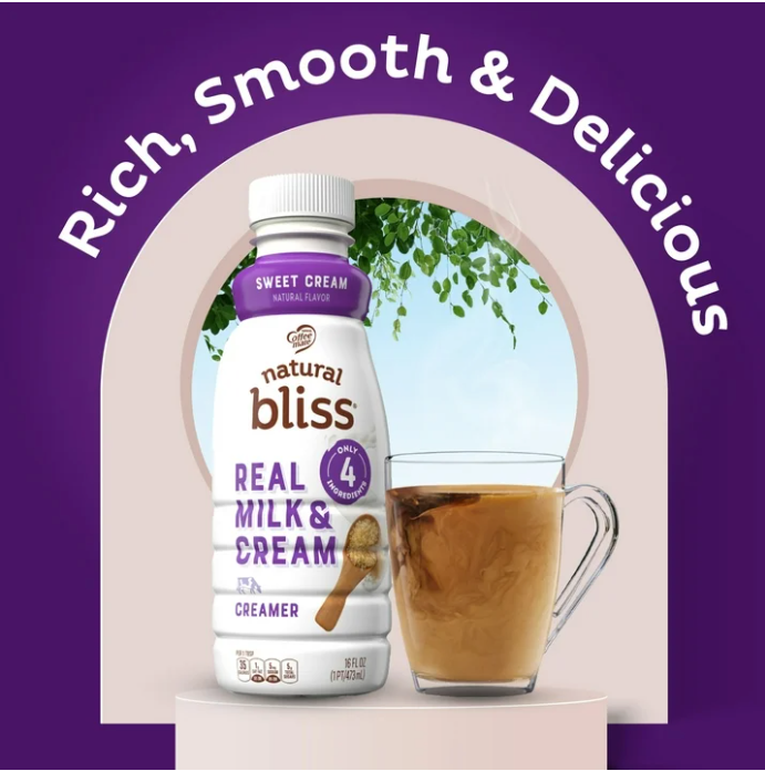 Natural Bliss Milk and Sweet Cream, Liquid Dairy Coffee Creamer, 16 fl oz
