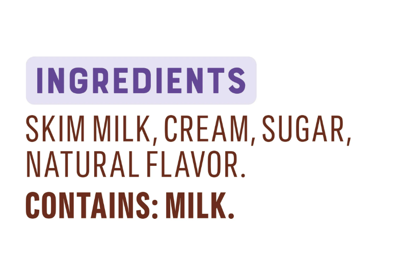 SKIM MILK, CREAM, SUGAR, NATURAL FLAVOR.