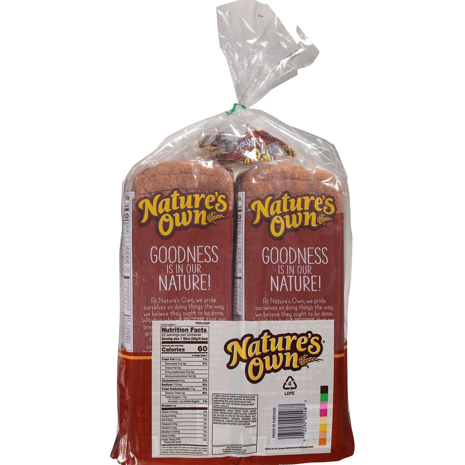 Nature's Own 100% Whole Wheat is one of our best selling breads. It offers the nutritional value of whole wheat in a soft, delicious loaf. Try a slice with fruit jam for breakfast or with your favorite deli meats and cheeses for a lunch or quick dinner.