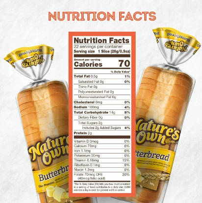 The official bread of back to school! If you love the warm, homemade taste of buttered bread, you'll be a fan of this Nature's Own® Butterbread White Bread Loaf. Enjoy the subtle butter flavor baked into every bread slice. Nature's Own Butterbread is a low-fat food and the perfect loaf of bread to have on hand for sandwich and toast recipes. You'll be amazed at how great your favorite sandwich tastes with Nature's Own Butterbread 20 oz. baked shelf-stable bread. Melt a couple slices of cheddar for a delicious grilled cheese or make it the base of a decadent French toast bread breakfast. You can even try using this in a monkey bread recipe. Pile on the goodness and bring everyone together with Nature's Own breads, buns and rolls.*Source: Circana Syndicated Data for the total U.S. latest 52 weeks ending 6.1.2025