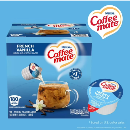 Coffee mate is America's #1 coffee creamer. With a variety of flavors and formats, Coffee mate has your coffee creamer needs covered. Enjoy the best with Nestle Coffee mate French Vanilla flavored liquid creamer singles.