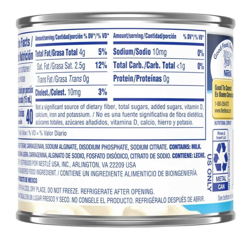 Nestle Media Crema Neutral Flavor Heavy Table Dairy Cream, 7.6 fl oz Can