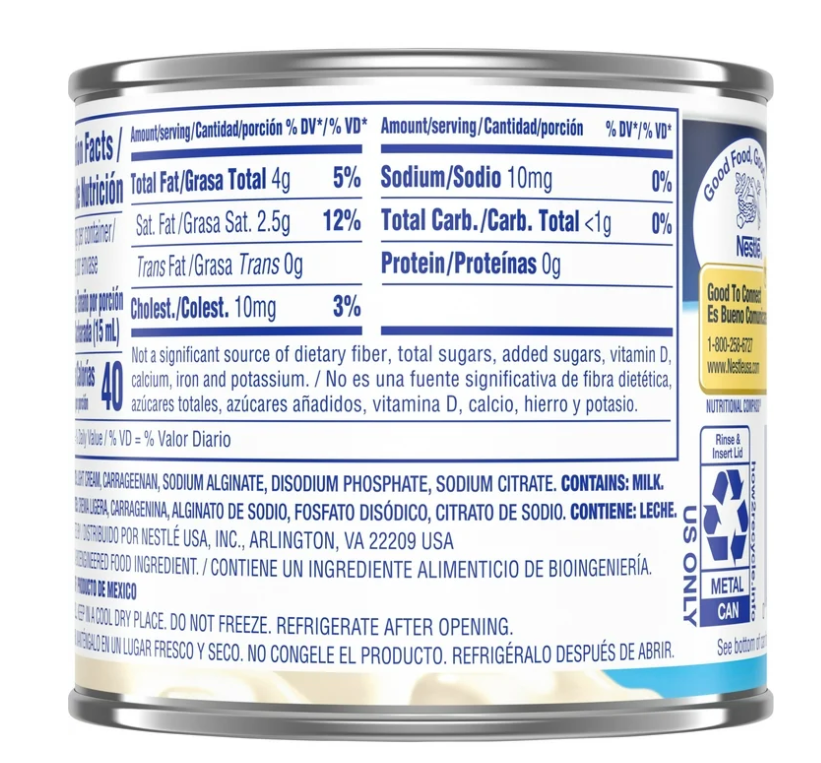 Nestle Media Crema Neutral Flavor Heavy Table Dairy Cream, 7.6 fl oz Can