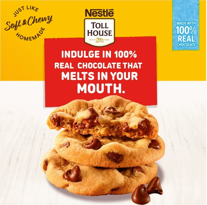 Nestle Toll House Chocolate Chip Cookie Dough makes classic chocolate chip cookies in minutes for a treat the whole family will enjoy. This cookie dough is full of semi sweet morsels, for a cookie that delivers the rich, creamy semi-sweet chocolate taste you love from Nestle Toll House. This refrigerated cookie dough contains no preservatives, artificial flavors, or colors, and the chocolate chips are made with 100% real chocolate. Simply spoon heaping teaspoons of Nestle Toll House cookie dough onto an ungreased baking sheet and bake until golden brown. Keep this cookie dough refrigerated until the use by date on the package or freeze before the use by date on the package for up to 2 months until ready to enjoy.