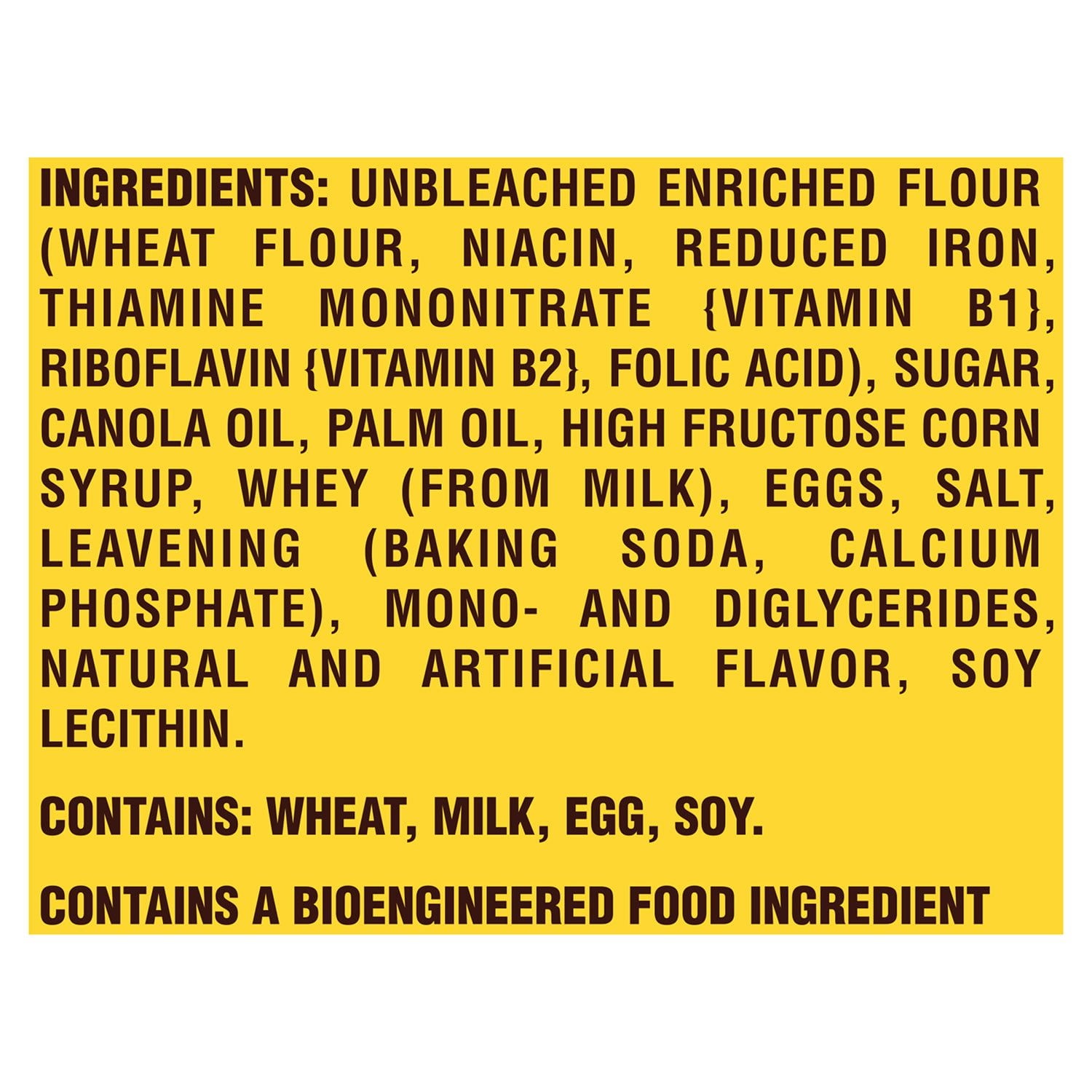 Ingredients: Unbleached Enriched Flour (Wheat Flour, Niacin, Reduced Iron, Thiamine Mononitrate {Vitamin B1}, Riboflavin {Vitamin B2}, Folic Acid), Sugar, Canola Oil, Palm Oil, High Fructose Corn Syrup, Whey (From Milk), Eggs, Salt, Leavening (Baking Soda, Calcium Phosphate), Mono- And Diglycerides, Artificial And Natural Flavor, Soy Lecithin.