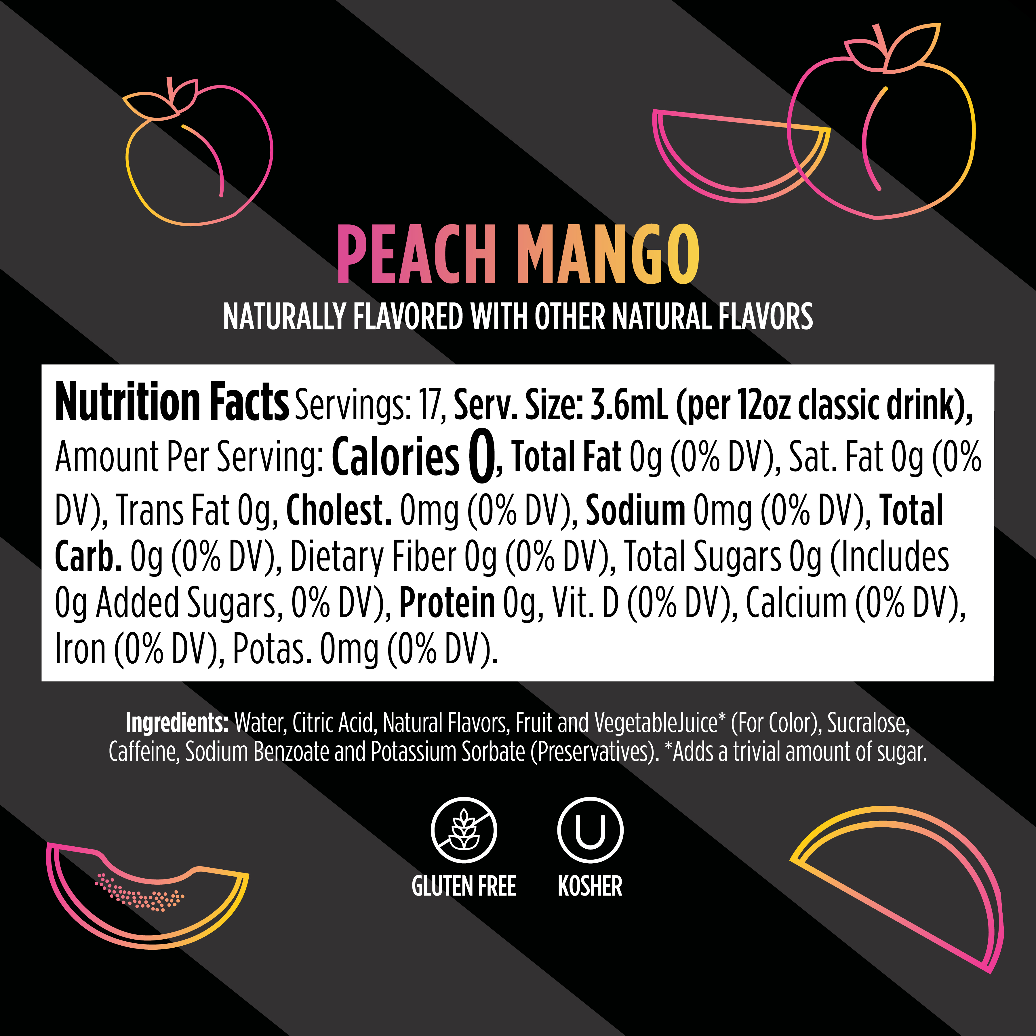 The perfect juicy pairing. Bold fruit flavored water with 50mg of caffeine per 12oz classic serving, great both sparkling or still. Create customized drinks on your countertop. Enjoy bold fruit flavor with 0 calories, 0 sugar, and none of the compromise.