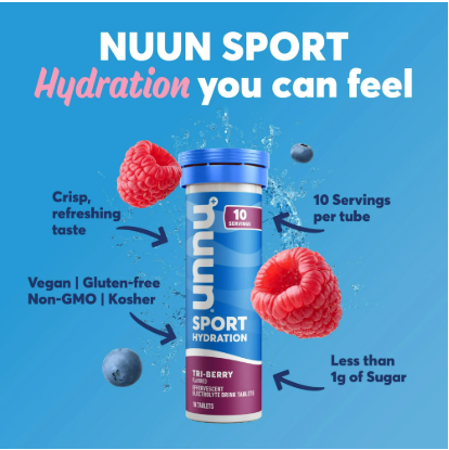 Nuun Sport Electrolytes Hydration Drink Mix Tablets, Tri-Berry, 10 Count Tube