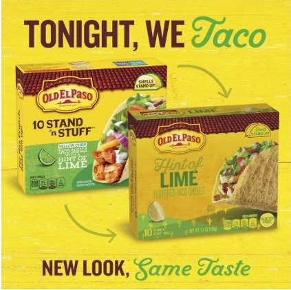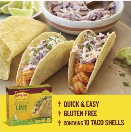 CONTAINS: One 5.4 oz box of Old El Paso Hint Of Lime Flavored Stand 'N Stuff Taco Shells; 10 shells