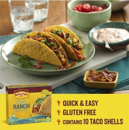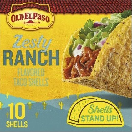 CONTAINS: One 5.4 oz box of Old El Paso Zesty Ranch Flavored Stand 'N Stuff Taco Shells; 10 shells