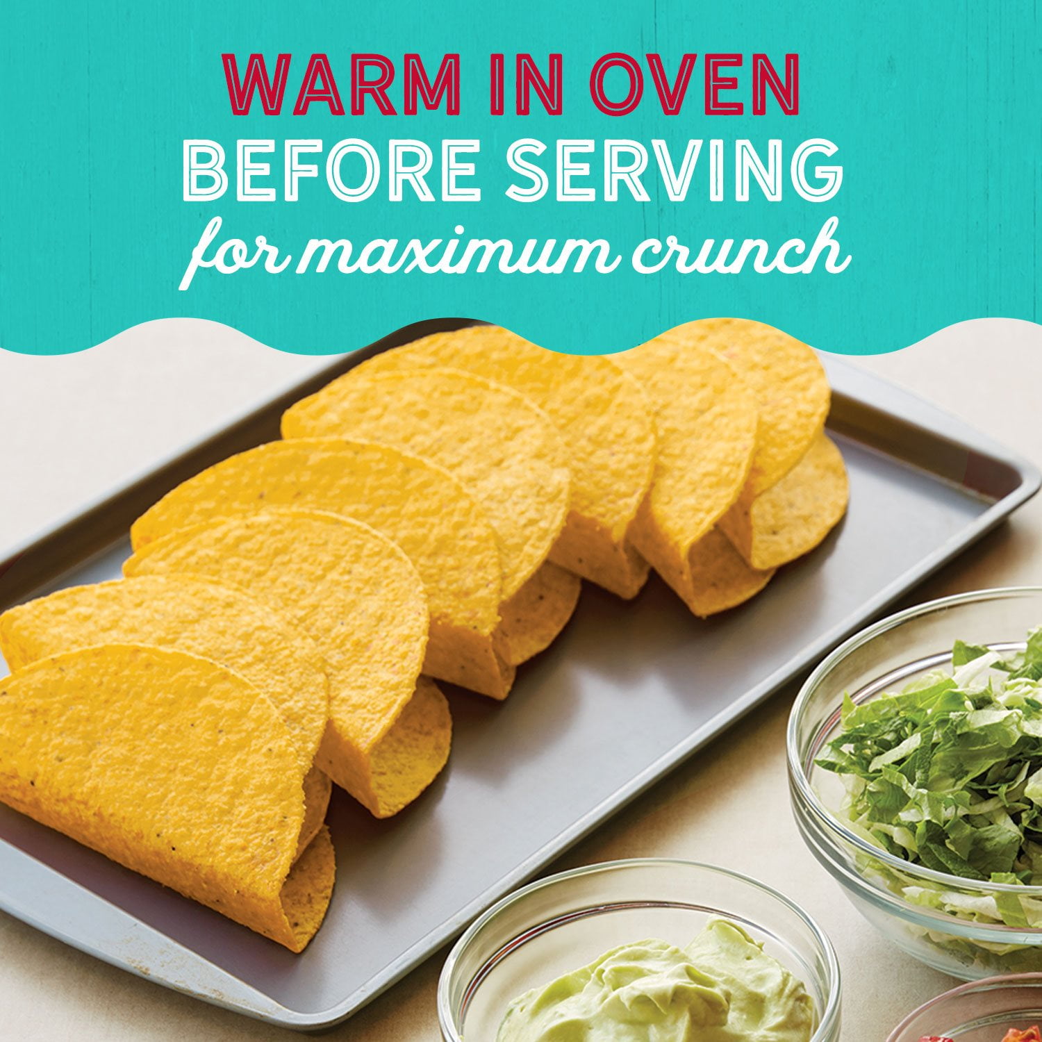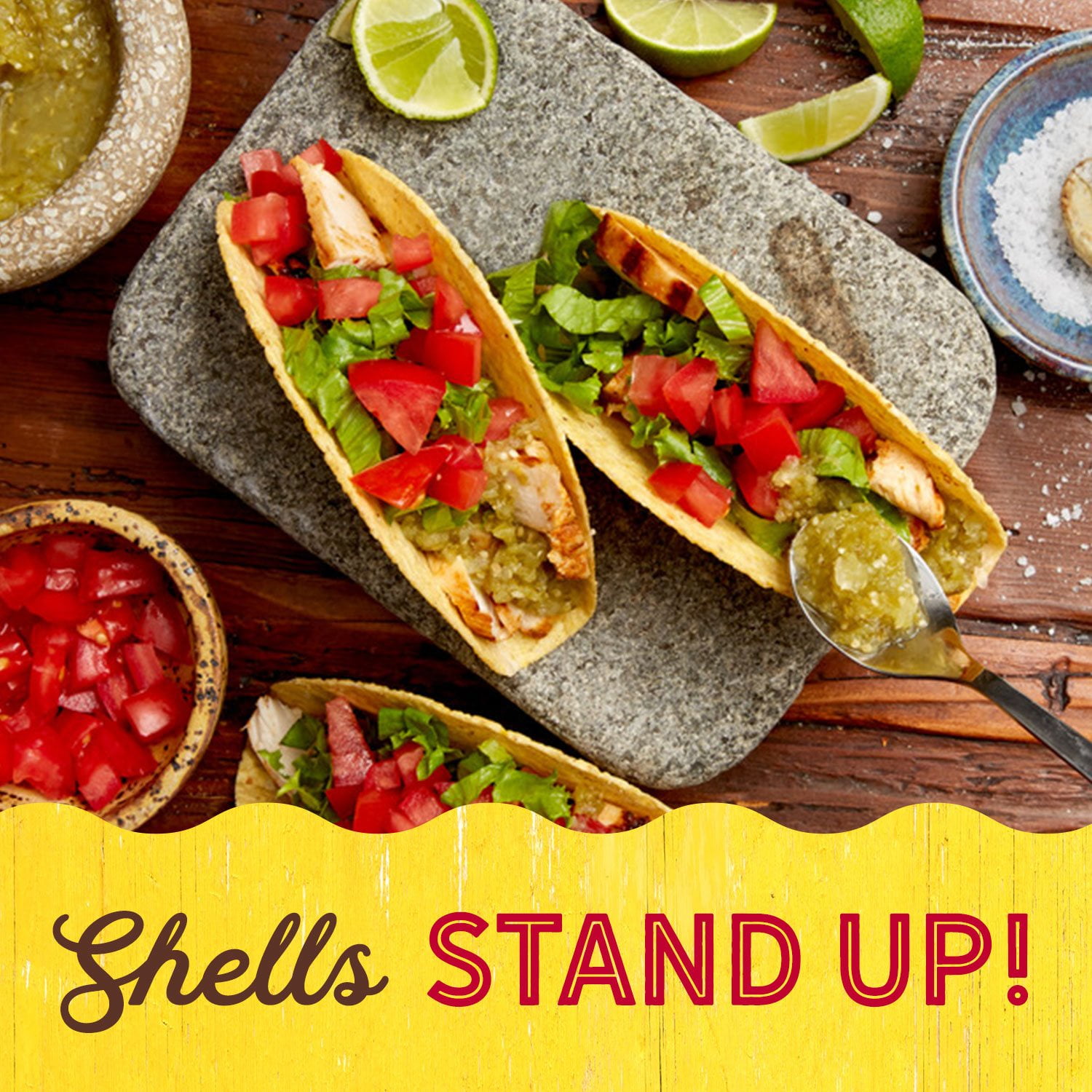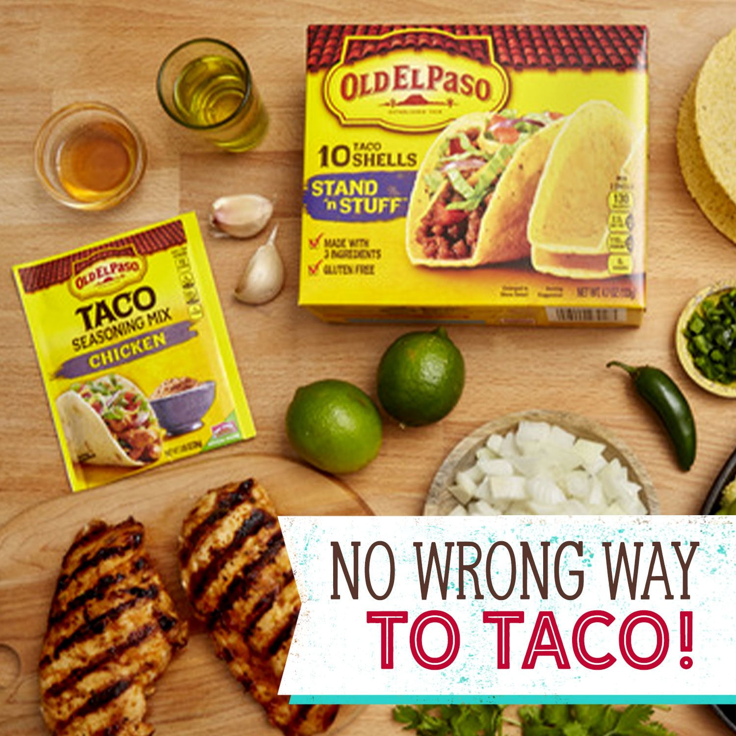 Tonight, we taco. But not without Old El Paso Stand ’n Stuff Taco Shells. These corn taco shells are made with three ingredients –– limed corn flour, palm oil and salt –– and feature a unique flat-bottom design to keep them upright on your plate. No more messy, spilled tacos! Pile them high with your favorite taco fixings and enjoy.