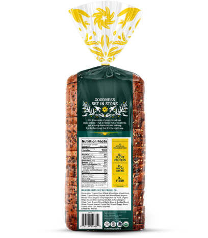 One Mighty Mill Everything Bread is a 24.5 oz loaf of freshly baked, sliced organic bread, stone-milled for more flavor, more nutrition, and a soft, satisfying texture. Unlike most modern breads made with ultra-processed ingredients, our bread is crafted from organic whole grains that we stone mill daily to preserve natural fiber, vitamins, and minerals. USDA Organic, Non-GMO Project Verified, and Kosher certified. Made with NO seed oils, refined sugars, artificial preservatives, or high fructose corn system. No artificial ingredients, no shortcuts — just simple, wholesome nutrition in every slice. This fresh, shelf-stable loaf is perfect for sandwiches, toast, or snacking. Whether you’re fueling your day or feeding the whole family, One Mighty Mill Bread is a better-tasting, better-for-you option with bold everything flavor and real nutrition in every bite. Available in three stone-milled bread flavors: Whole Wheat, Power Grains, and Everything.