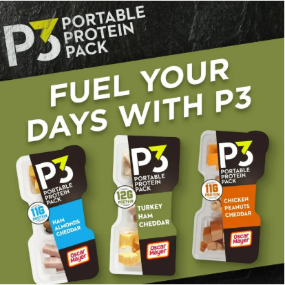 Oscar Mayer P3 Turkey, Ham and Cheddar Portable Protein Packs are a delicious protein snack