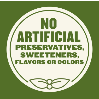 Crafted without artificial preservatives, sweeteners, flavors, or colors from artificial sources