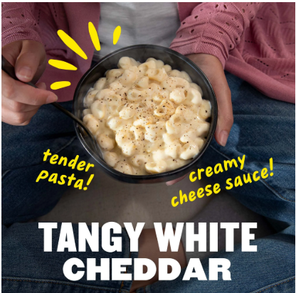 Cooked Enriched Pasta (Water, Semolina Wheat Flour, Egg Whites, Niacin, Ferrous Sulfate, Thiamine Mononitrate, Riboflavin, Folic Acid), White Cheddar Cheese (Pasteurized Milk, Cheese Culture, Salt, Enzymes), Milk, Water, Heavy Cream, Canola Oil, Contains 2% or less of: Butter (Cream, Salt), Corn Starch, Wheat Flour, Whey, Whey Protein Concentrate, Milkfat, Skim Milk, Dried Cream, Nonfat Dry Milk, Sodium Alginate, Enzymes, Modified Corn Starch, Lactic Acid, Acacia & Xanthan Gum, Sodium Citrate, Nisin Preparation and Salt.