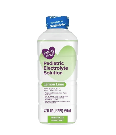 Parent's Choice Pediatric Electrolyte Solution restores electrolyte balance by quickly replenishing fluids, zinc and electrolytes for fast, effective rehydration. This electrolyte solution helps prevent mild to moderate dehydration in children (age 1 and up) and adults, and contains more electrolyte sodium compared to leading sports drinks, soda. This product does not contain artificial flavors, sweeteners or synthetic colors. Recommended by pediatricians and pharmacists, you can be sure you're giving your child the best with Parent's Choice Pediatric Electrolyte Solution