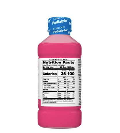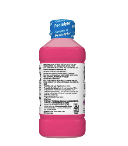 Parent's Choice Pediatric Electrolyte Solution restores electrolyte balance by quickly replenishing fluids, zinc and electrolytes for fast, effective rehydration. This electrolyte solution helps prevent mild to moderate dehydration in children and adults, and contains more electrolyte sodium compared to leading sports drinks, soda, 100 percent apple juice and water. It is formulated with prebiotics to help promote a healthy digestive system and features a natural strawberry flavor with other natural flavor that is great for both kids age 1+ and adults. This product does not contain artificial flavors, sweeteners or synthetic colors. Recommended by pediatricians and pharmacists, you can be sure you're giving your child the best with Parent's Choice Pediatric Electrolyte Solution. Comes in a 33.8 fl oz bottle.