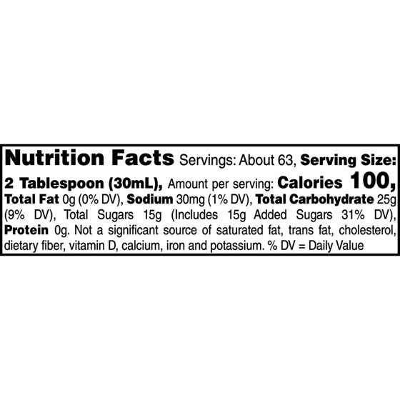 Corn syrup, high fructose corn syrup, water, cellulose gum, caramel color, salt, natural and artificial flavor, sodium benzoate and sorbic acid (preservatives), sodium hexametaphosphate.
