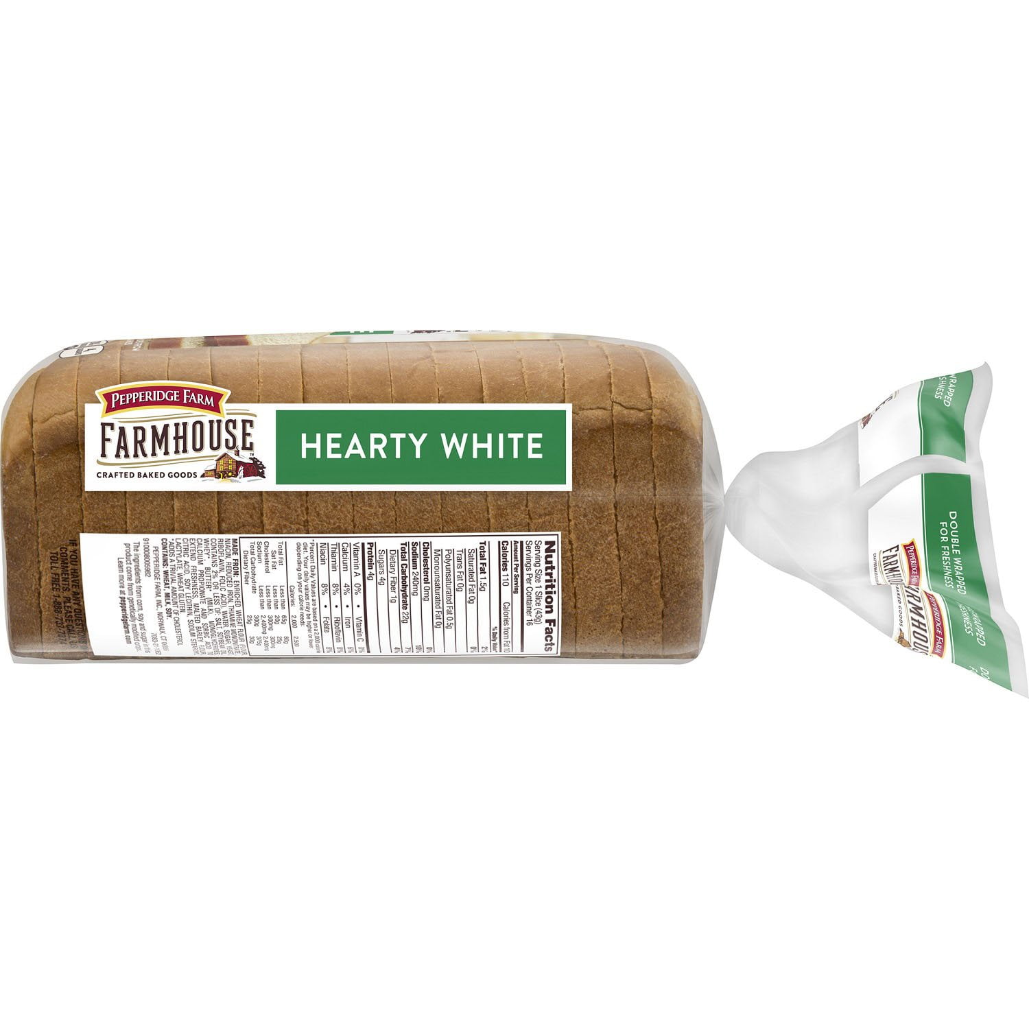 Pepperidge Farm Farmhouse™ Hearty White Bread (2 pk., 24 oz.) is as timeless as a pair of blue jeans or a white t-shirt, it's as American as a slice of apple pie and it's as reliable as Old Faithful. You can never go wrong with a soft-baked slice of white bread, or two in the case of a sandwich.. Even two slices, toasted with butter, make for the perfect complement to scrambled eggs for breakfast—or fried eggs, if you prefer to soak up the yolk with a piece of spongy white Pepperidge Farm bread.