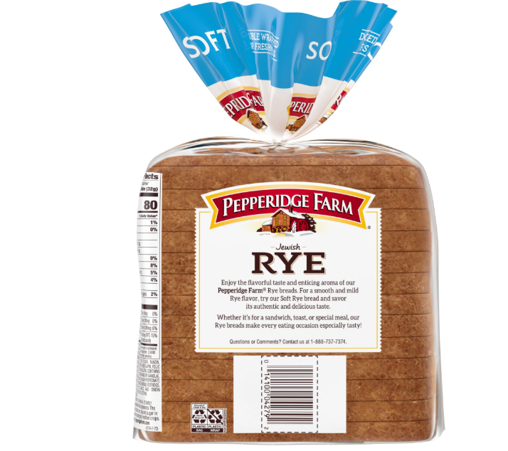Pepperidge Farm Jewish Rye Soft Rye Bread, 16 oz. Bag