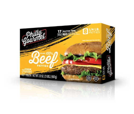 Savor the deliciousness of Philly Gourmet 100% Pure Beef Patties! This pack includes 8 mouthwatering 1/4 lb. patties, perfect for creating gourmet burgers at home. Made from 100% pure beef, these patties are juicy, flavorful, and ready to grill. Whether you're hosting a backyard barbecue or a weeknight dinner, these high-quality beef patties will satisfy your cravings for a hearty and satisfying meal. Taste the excellence of Philly Gourmet today! Shellfish-free, 18 grams of total fat. Frozen. No antibiotics.
