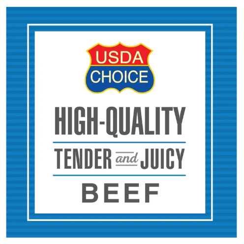 USDA Choice Angus Beef, known for marbling, tenderness, and flavor