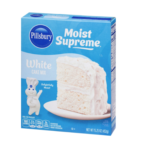 - One 15.25 oz box of Pillsbury Moist Supreme White Cake Mix