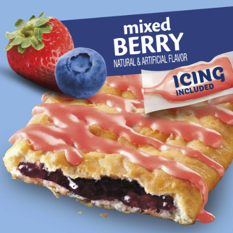 CONTAINS: One 11.7 oz box of Pillsbury Toaster Strudel Mixed Berry Natural and Artificial Flavor Pastries; Includes Strawberry icing, naturally flavored with other natural flavors; 6 toaster pastries