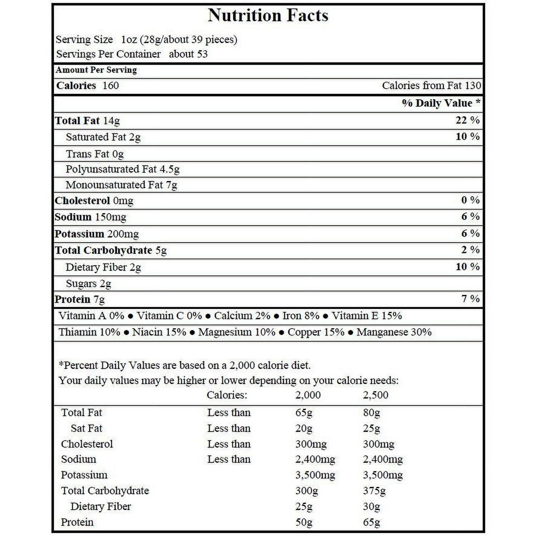 - Per 1 oz. serving: 170 calories, 2 g sat fat, 10% DV, 150 mg sodium, 7% DV, 2 g total sugars